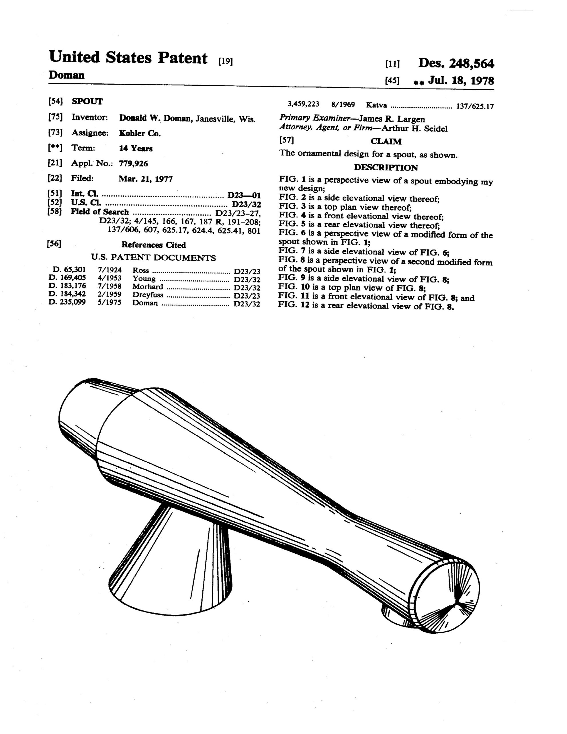 Doman’s work was highly regarded by Kohler leadership, and he was soon added to more project development initiatives. Doman faithfully designed Kohler’s full plumbing portfolio for a quarter century, spanning bathroom lavatories, faucets, shower enclosures, bathtub surrounds, toilets, urinals, and drinking fountains.
