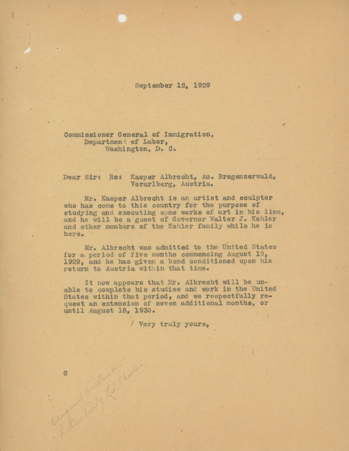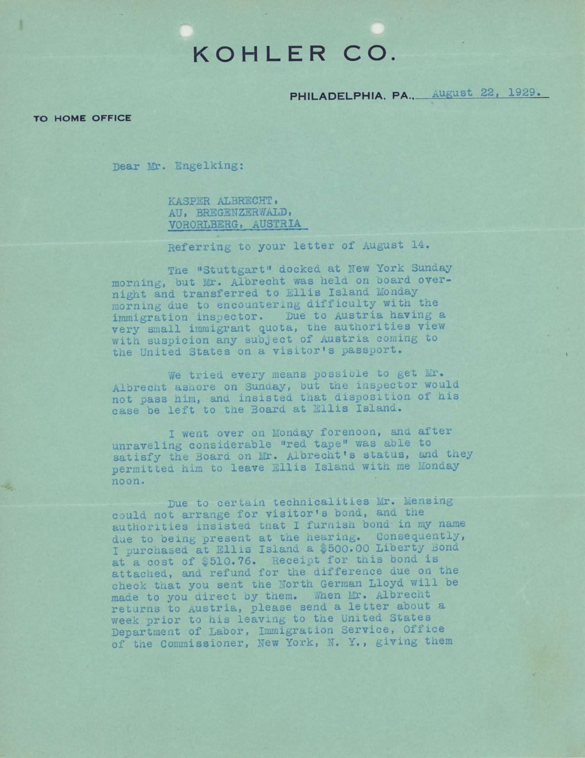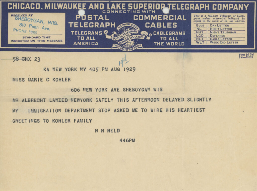 Marie wrote Harold upon Kaspar’s arrival to the U.S., which was his first to America, and he did not speak English.