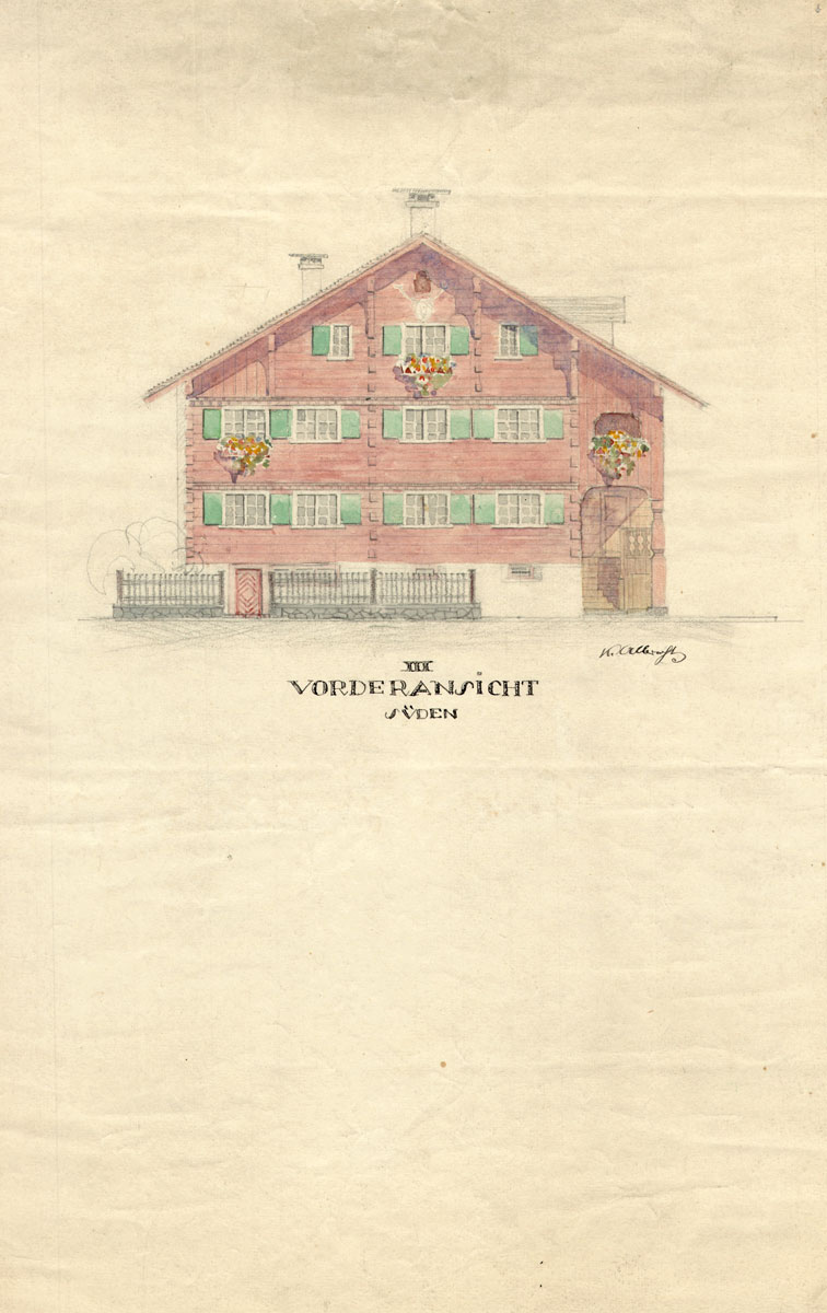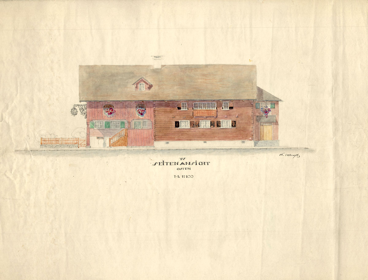 In the arrangement of its ground plans, as well as division of rooms and in the exterior finish, the Waelderhaus of Kohler corresponds entirely to the character of Waelderhaus of the best tradition and time. To answer the purpose, all modern and required convenience were effected here.
